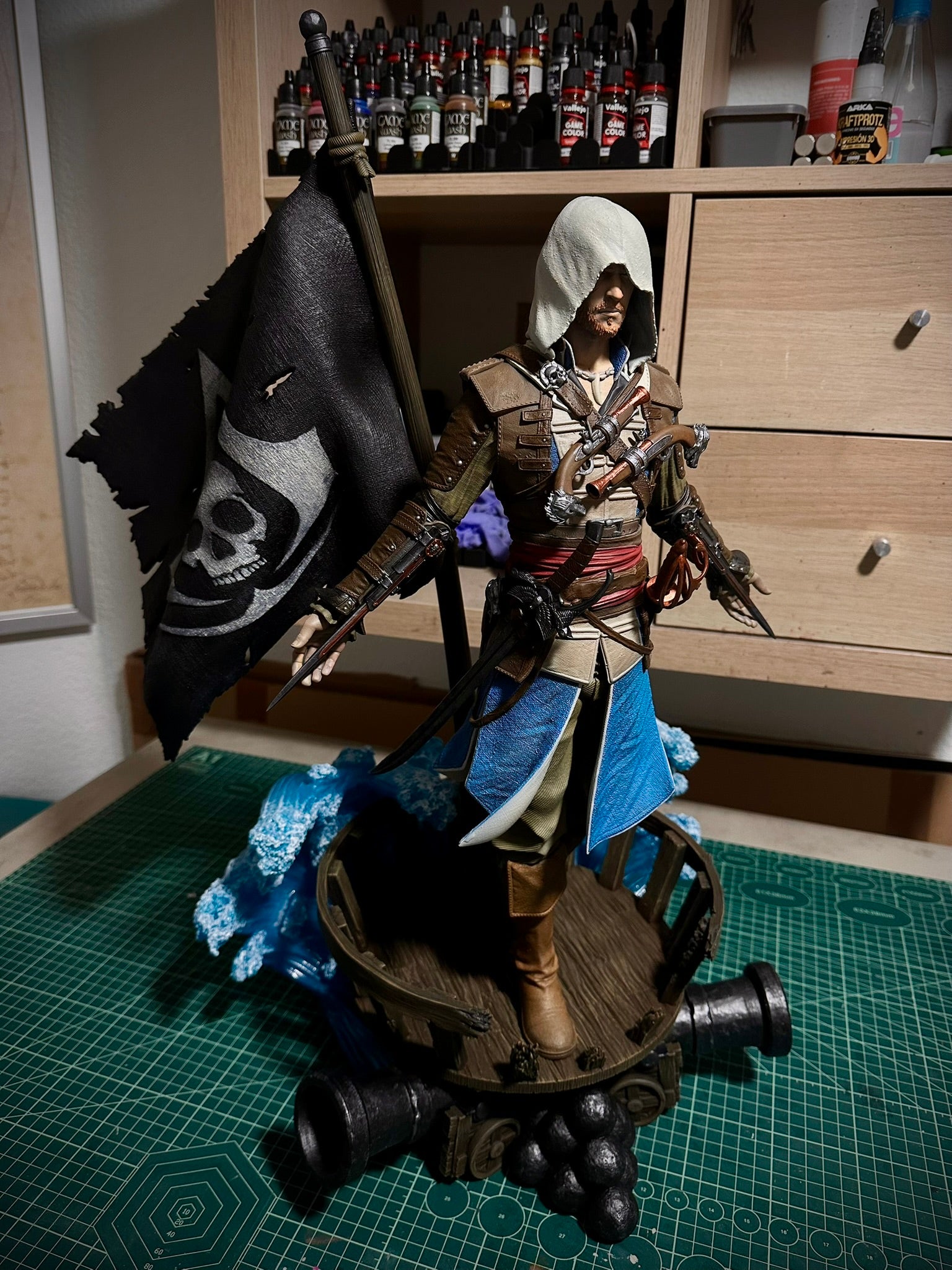 Fine brush work is used to paint the smallest details, carefully refining expressions, color transitions, and realistic finishes.
